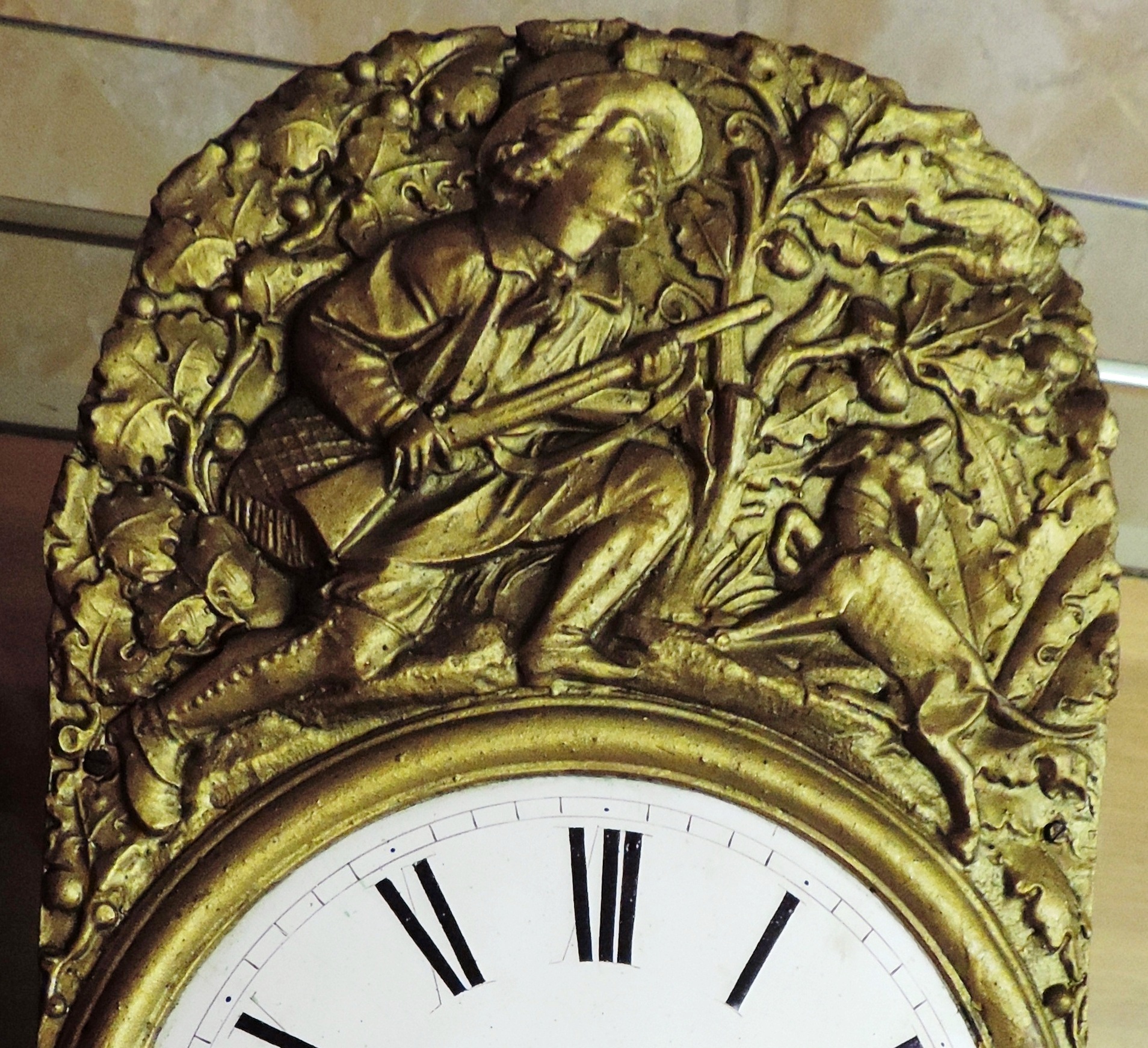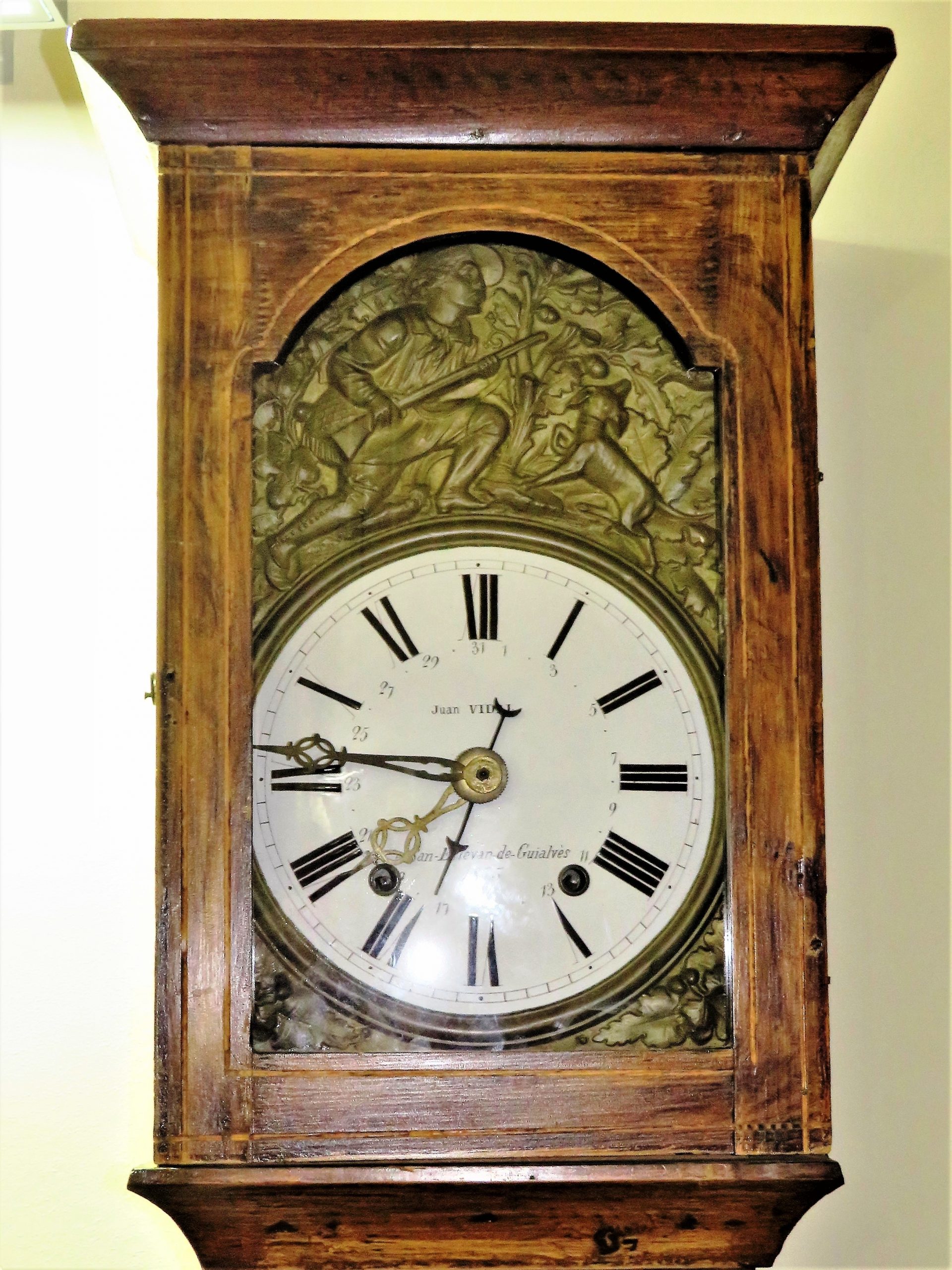 CARCASSA : De llautó ;representa !’escena d’un cac;ador amb el seu gos. PENDOL : De llentia petita ; brac; plegable.