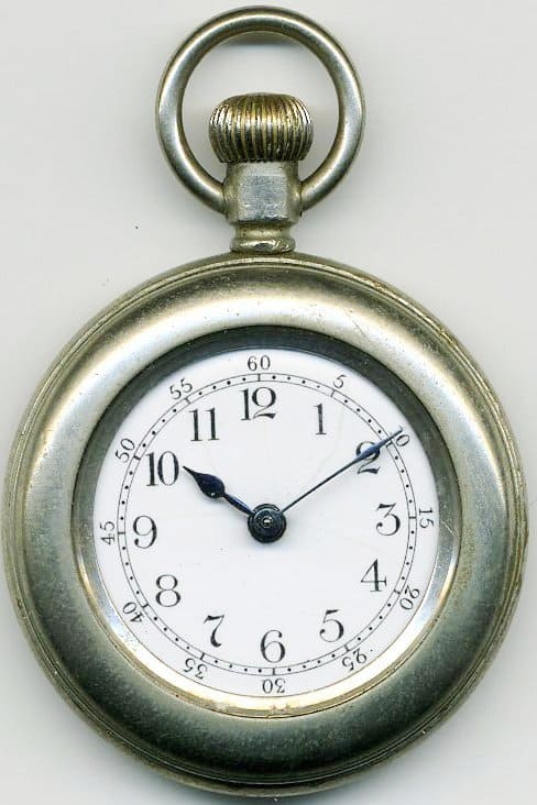 ESFERA : De metall amb esmalt  blanc amb tots els minuts pautats,agulles de metall pavonat números àrabs en negra , sense segunder forma de pica.
