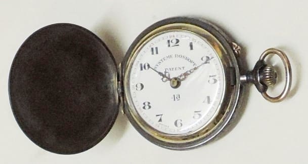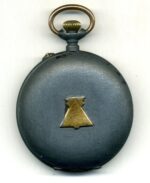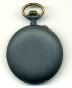 CAIXA : de ferro amb el bisell daurat,i l’anella de la corona.esmaltada negra cobalto.Diametre 55  mil-lìmetres i 18 de gruix,Saboneta.