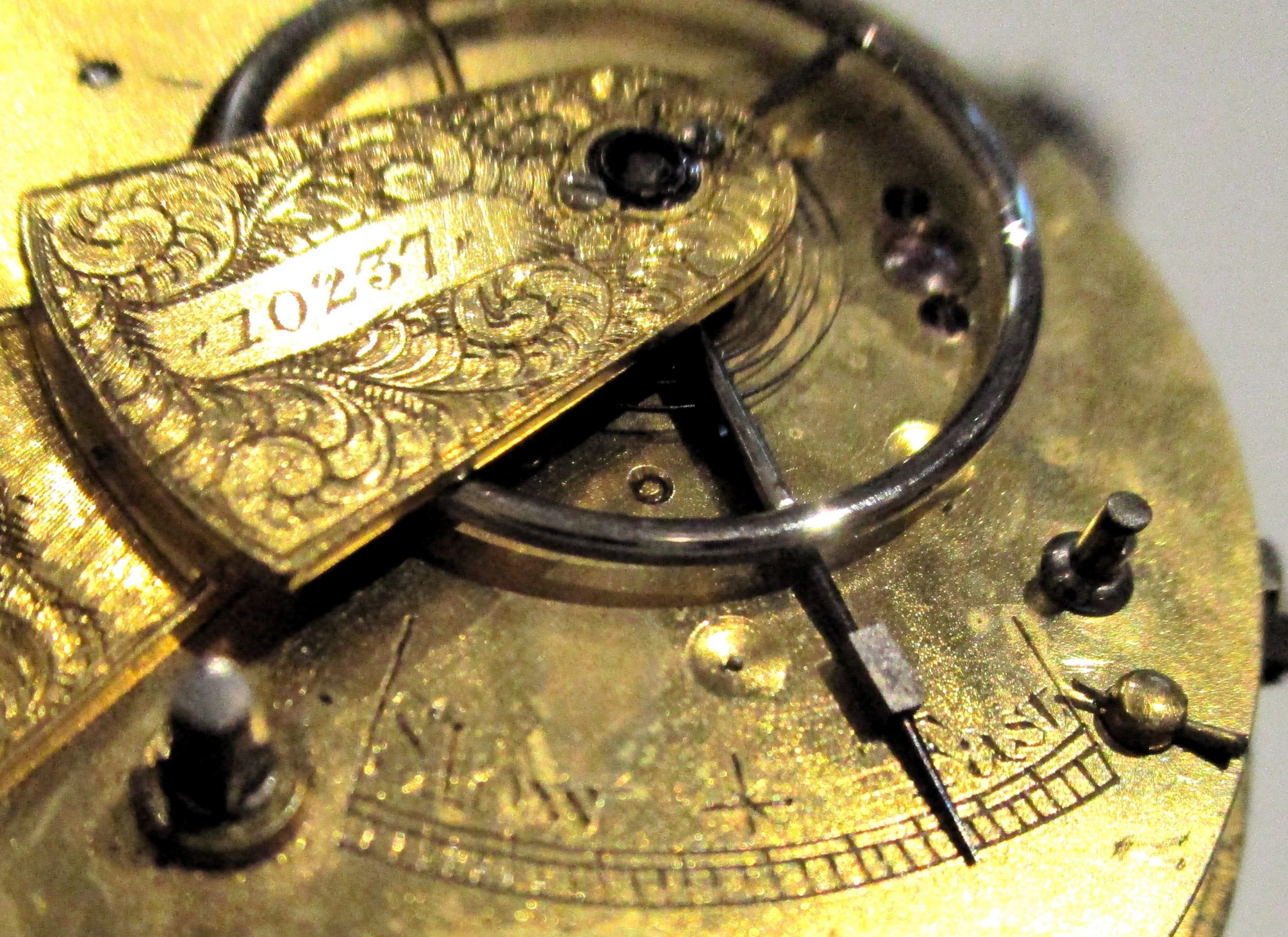 ESCAPAMENT :d’Ancre anglesa lateral,volant de llautó,espiral pla.